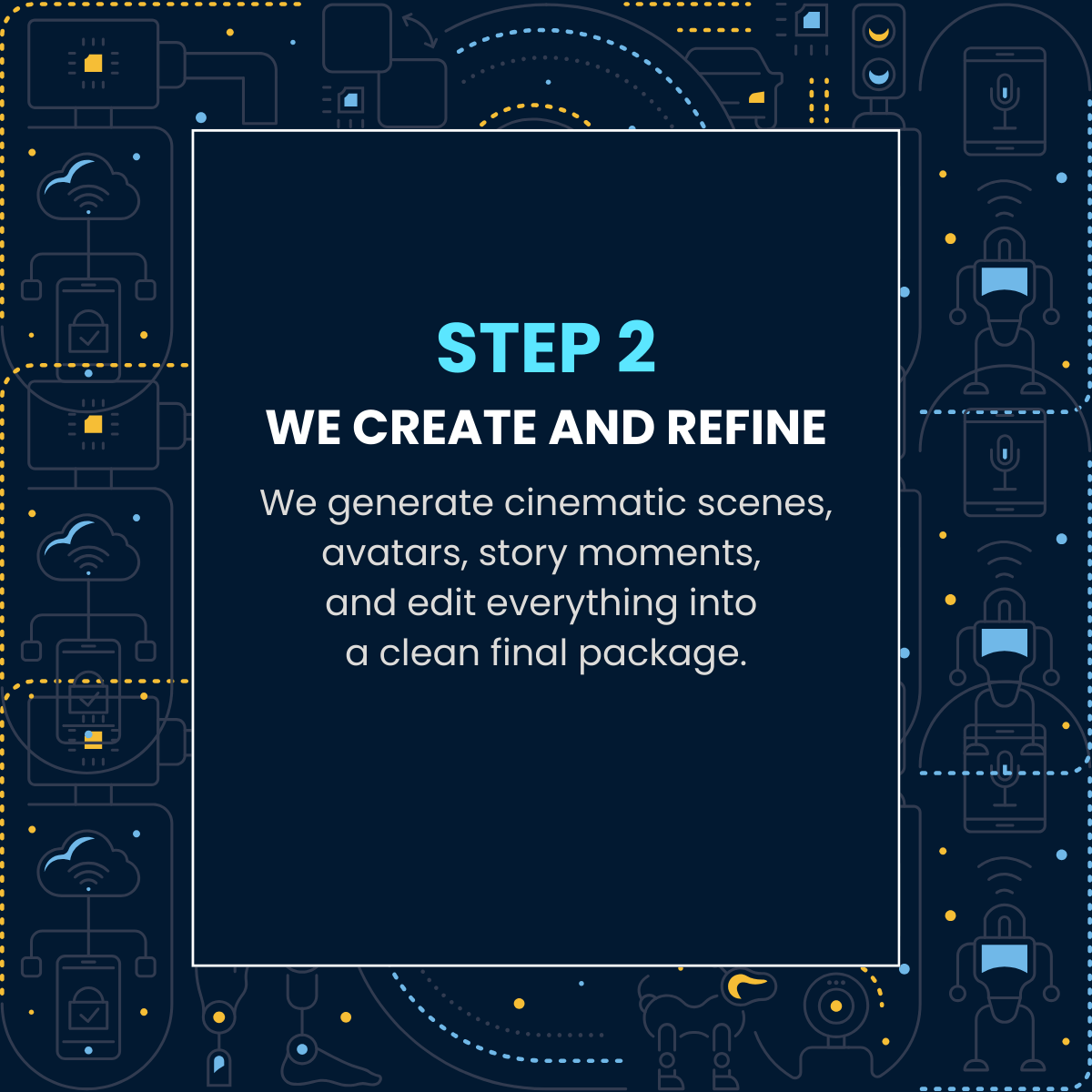 We use advanced AI tools to produce cinematic videos, branded stories, and full series that grab attention and make people stop scrolling.